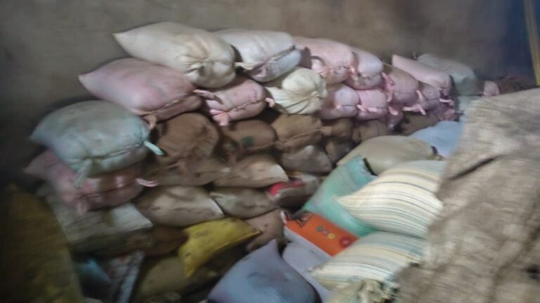 सूरजपुर- दिनांक,25 नवंबर 2025 को सूरजपुर जिले में धान के अवैध भंडारण और कोचियों पर नकेल कसने के लिए प्रशासन ने कार्रवाई तेज कर दी है। इसी कड़ी में राजस्व विभाग की टीम ने दूरती और खड़गवां कला में दबिश देकर तीन अलग-अलग प्रतिष्ठानों से कुल 975 बोरी (390 क्विंटल) अवैध धान जप्त किया है।