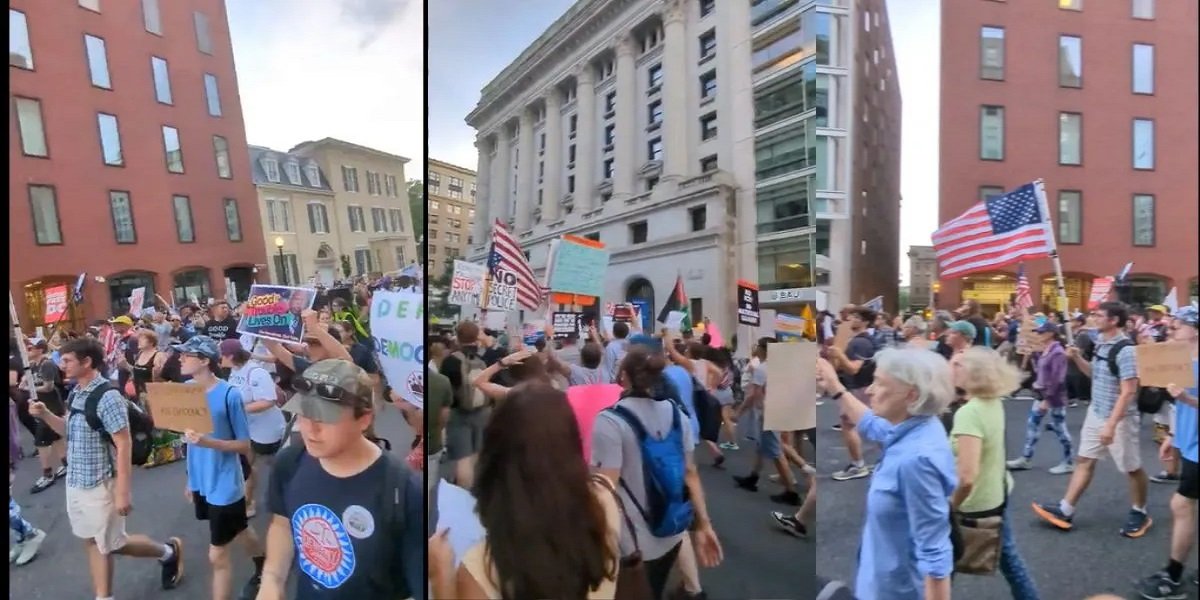 एक वीडियो में देखा गया कि ट्रंप और इमिग्रेशन (ICE) विरोधी प्रदर्शनकारियों ने न्यूयॉर्क सिटी के मैनहैटन स्थित फेडरल प्लाज़ा में ICE भवन के बाहर एक चौराहे पर बैठकर धरना दिया और रास्ता अवरुद्ध कर दिया।